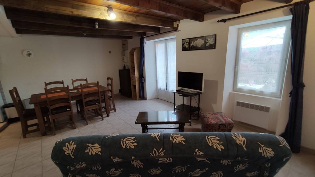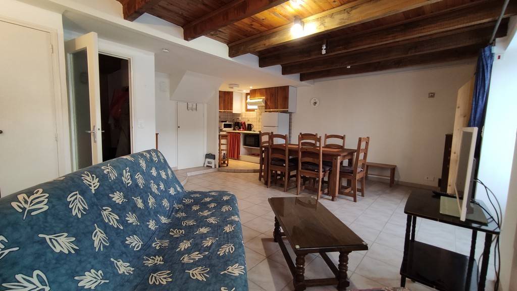 Une grande pièce au rez-de-chaussée avec salon, coin cuisine, et espace repas. Toilettes. A l'étage, deux grandes chambres dont une avec une alcôve pour deux couchages supplémentaires. Salle de bain / toilettes.