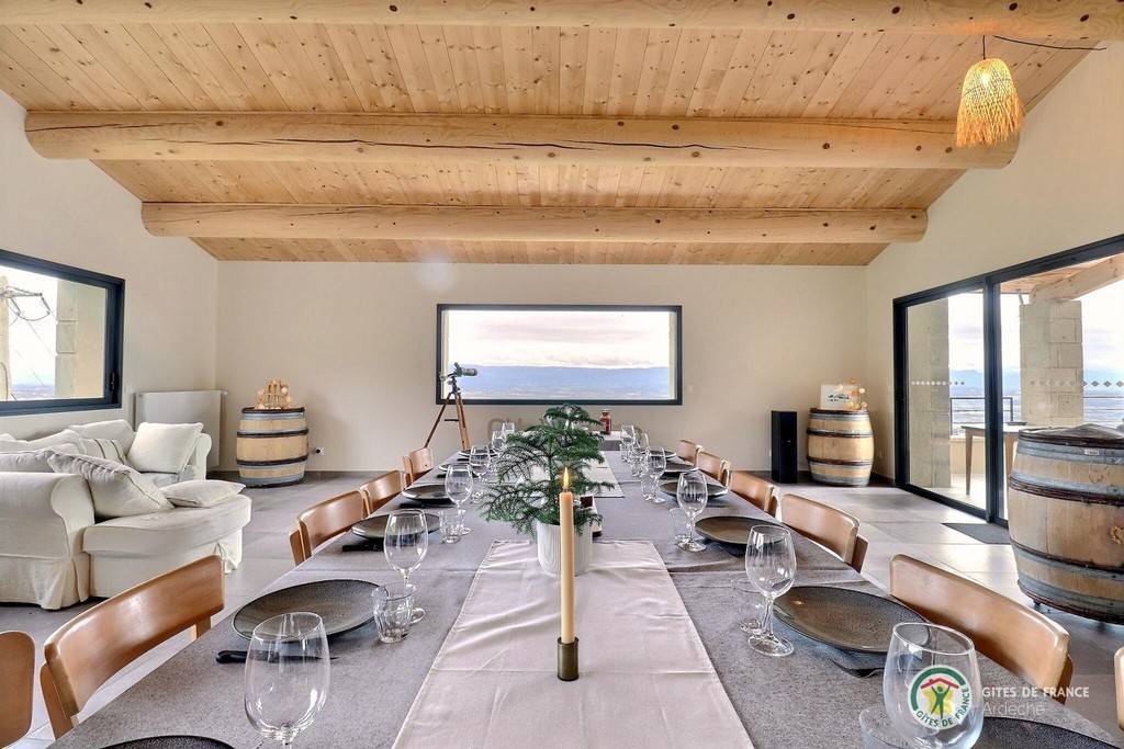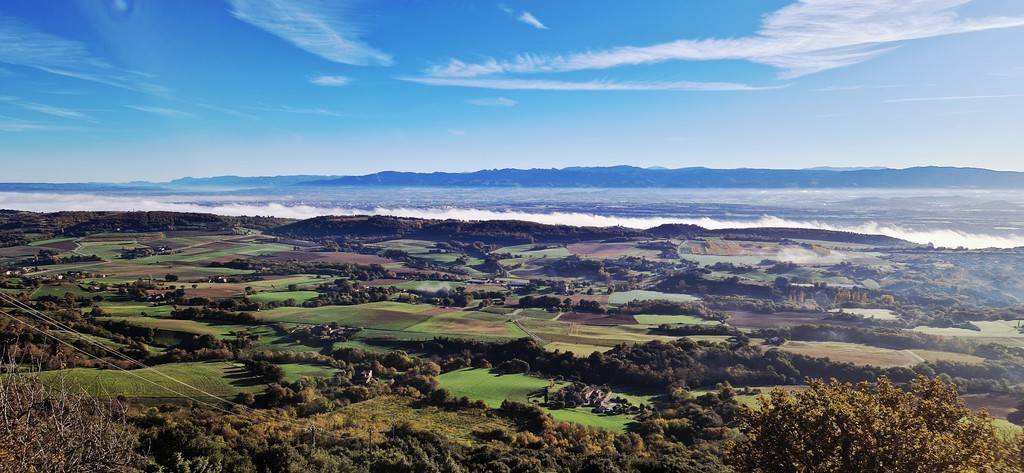 La ferme est située sur la colline dominant le village de Toulaud en pleine nature avec vue panoramique sur la vallée du Rhône et le Vercors.