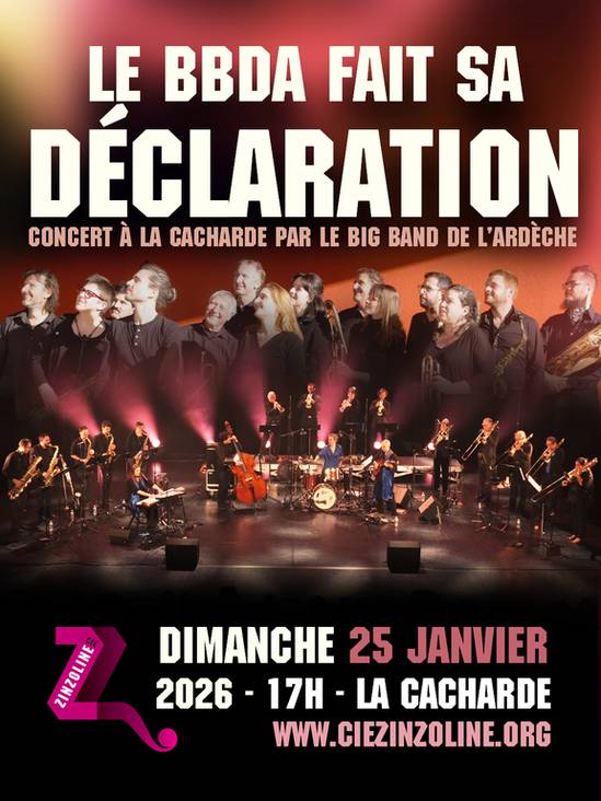 Avec "Le BBDA fait sa déclaration", le Big Band de l’Ardèche présente un répertoire 100 % original inspiré de la Déclaration universelle des droits de l’Homme de 1948. Six compositeurs de l'orchestre livrent des créations puissantes et engagées, où swing et écritures contemporaines font résonner dignité, liberté d’expression et égalité en droits.