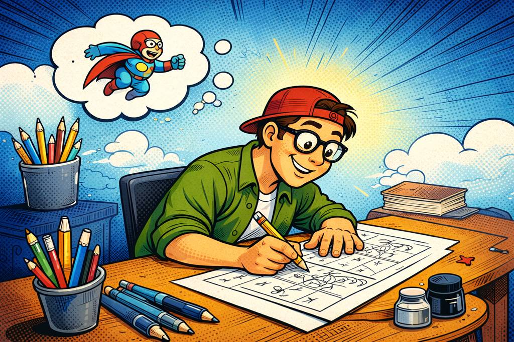 À travers six panneaux pédagogiques réalisés par 48h BD, explorez les différentes étapes de création d’un album : scénario, recherche des personnages, crayonné, encrage, mise en couleur, lettrage, maquette…