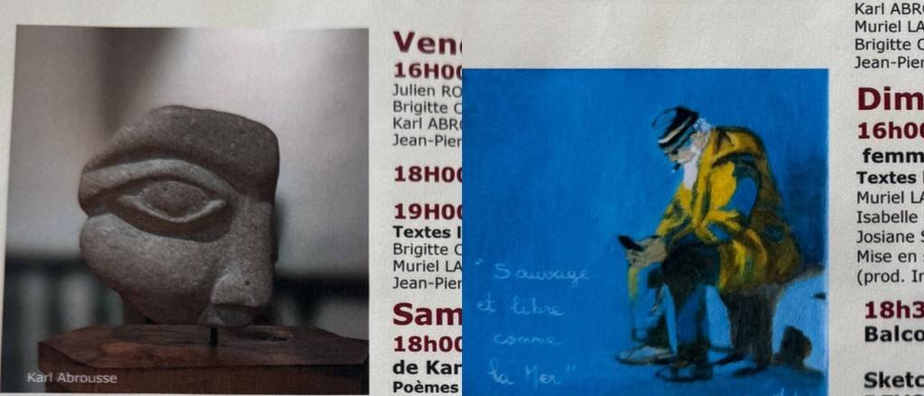 Rencontre artistique mêlant poésie, peinture et sculpture, avec exposition, lectures et spectacles. Les œuvres sont portées par artistes et comédiens dans une ambiance conviviale, suivie de moments d’échange autour d’un verre.