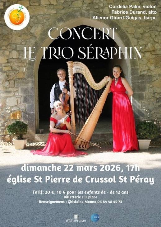Le Relais Drôme Ardèche de l’Opération Orange de Sœur Emmanuelle organise le 22 mars 2026 à 17h en l’église saint Pierre de Crussol à Saint-Péray, un concert exceptionnel avec des artistes talentueux, le Trio Séraphin, Violon, Alto, Harpe.