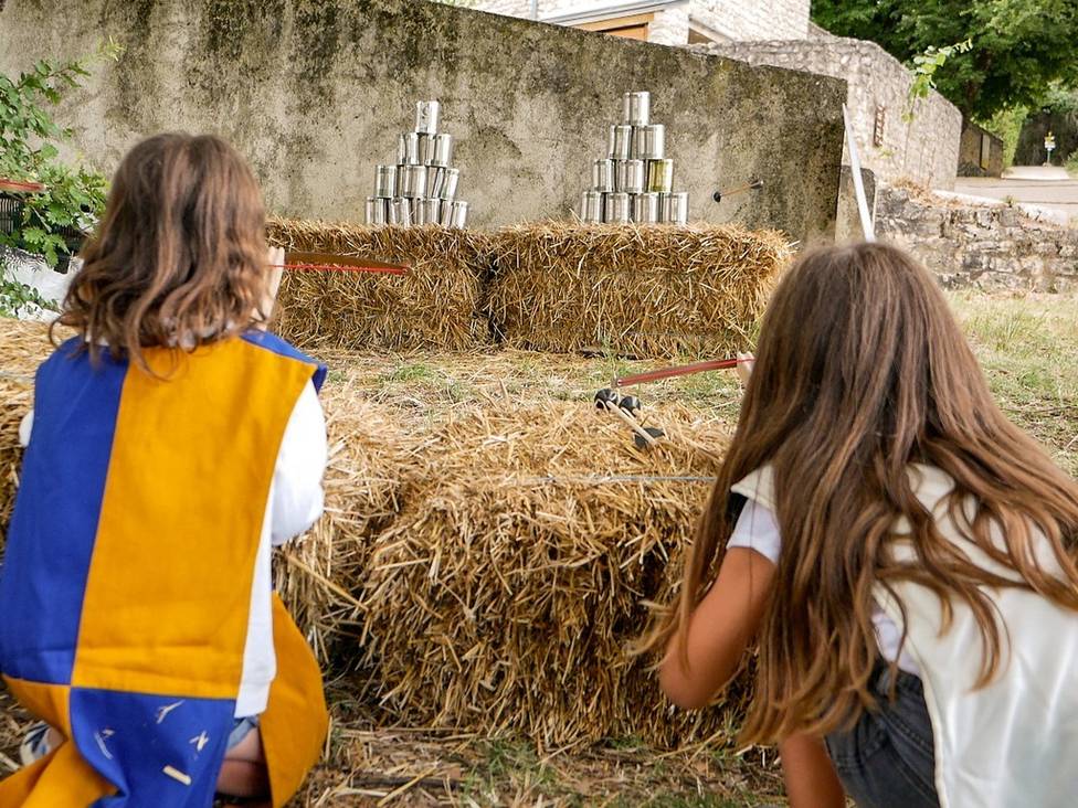 Au cours de cette initiation aux techniques de défense du Château de Crussol, les enfants doivent faire preuve d’adresse et de précision.