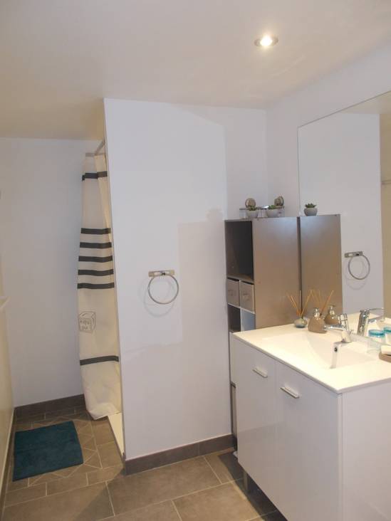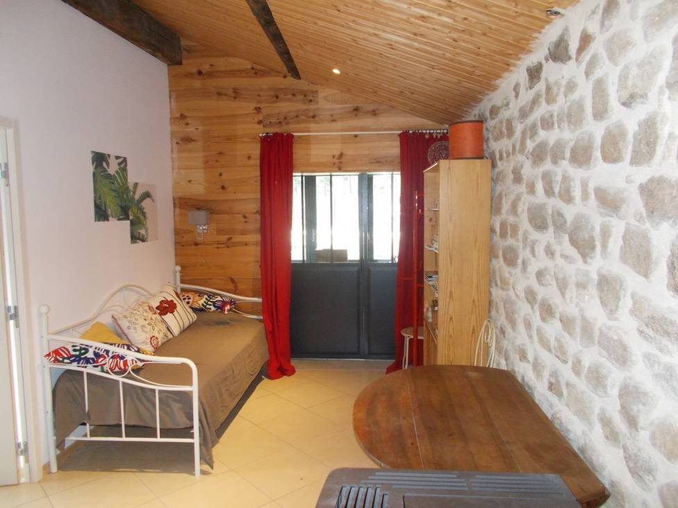 Il se compose d'une grande pièce à vivre (50m2) avec coin cuisine équipée, d'une chambre (12m2), d'une salle de bains/wc et d'un wc séparé. Entrée indépendante donnant sur un salon d'été. En extérieur, terrasse équipée et indépendante.